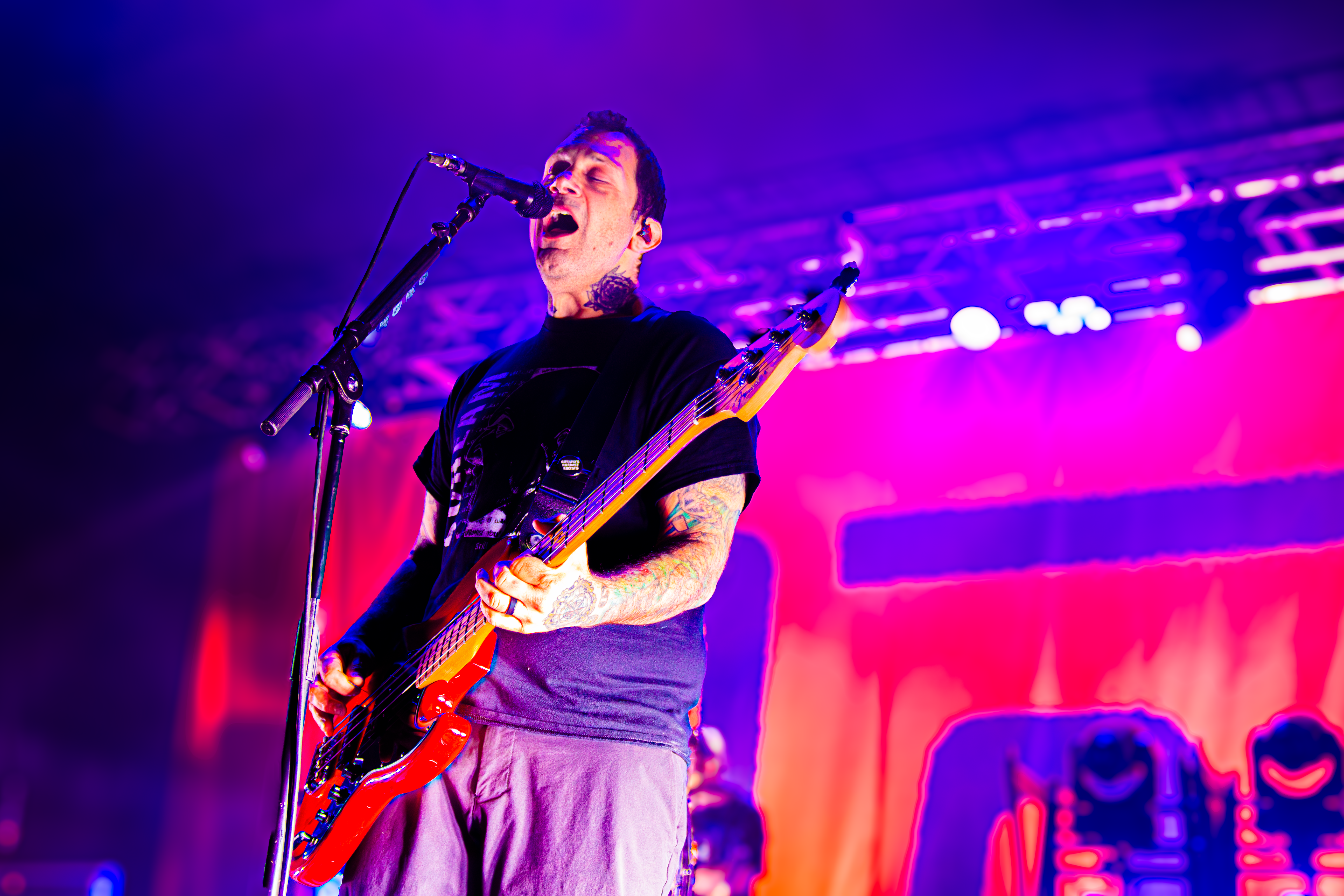 The crowd surfing starts pretty much as soon as the lights go down for Rise Against. The vocals from the crowd are as loud as any speaker in the venue. Despite two and a half decades of touring the UK, they still manage to squeeze some firsts into the set, like the debut Birmingham performance of ‘Where Abouts Unknown’ or a spontaneous ‘ooggie ooggie ooggie, ay ay ay’ chant.