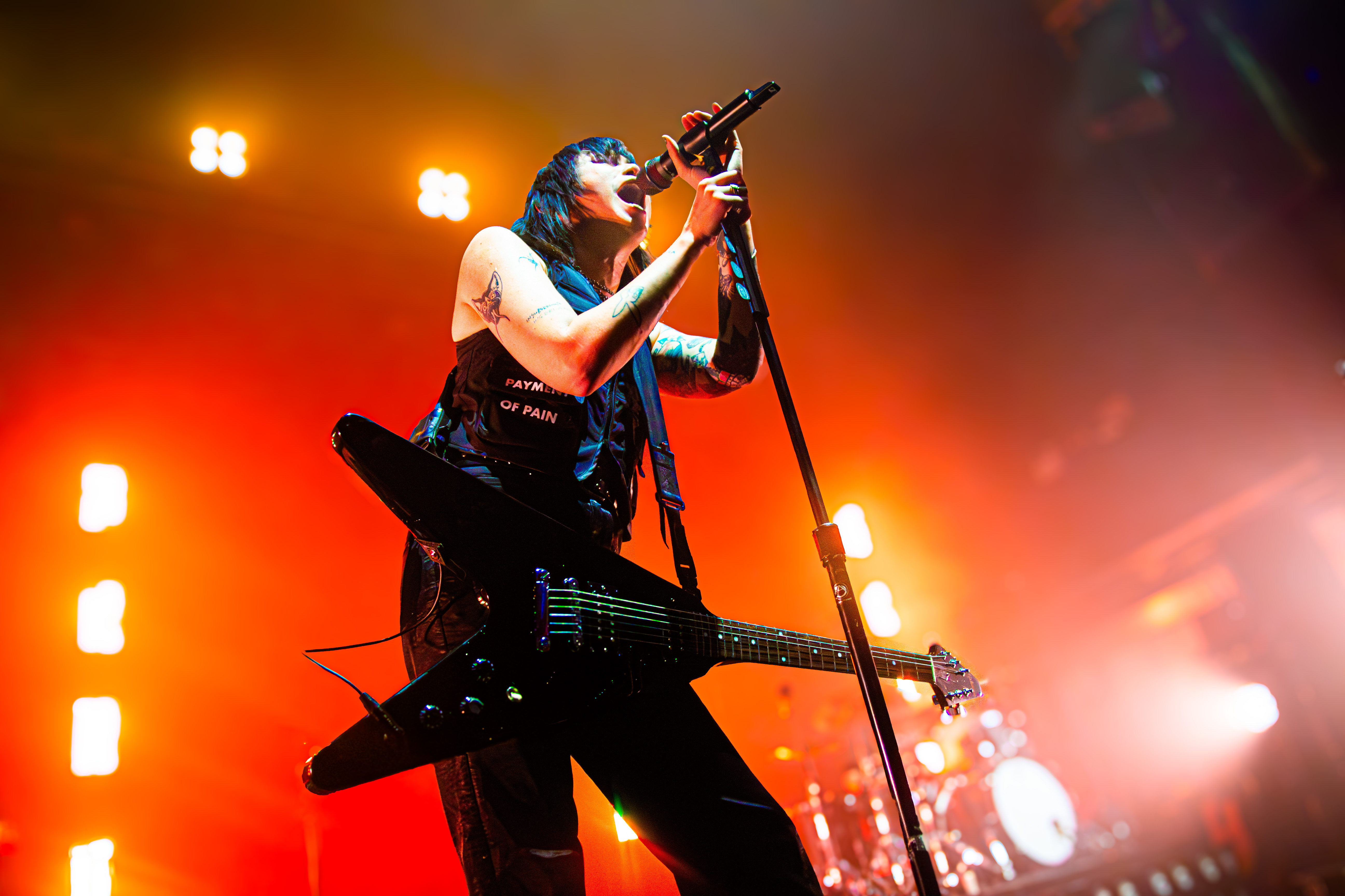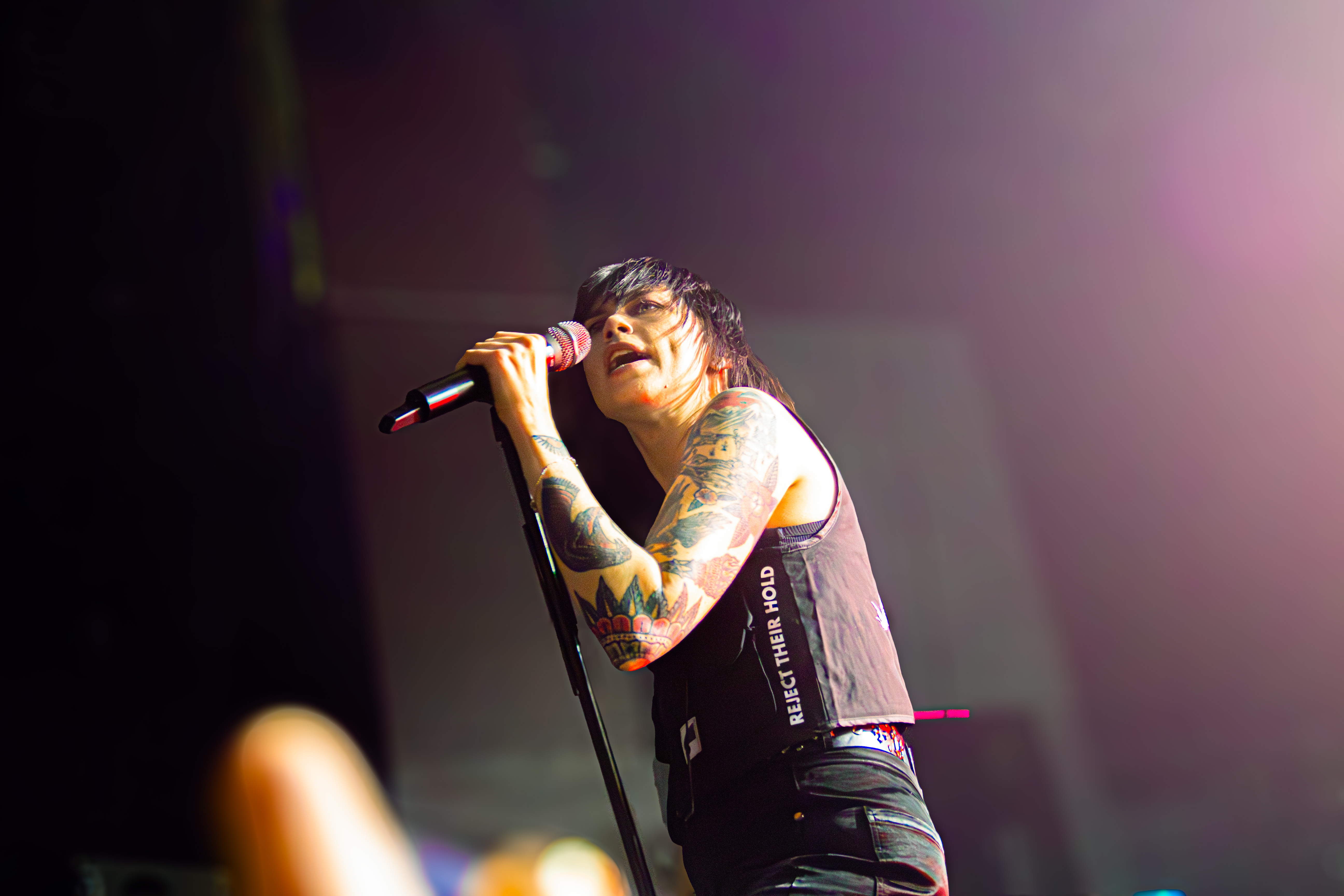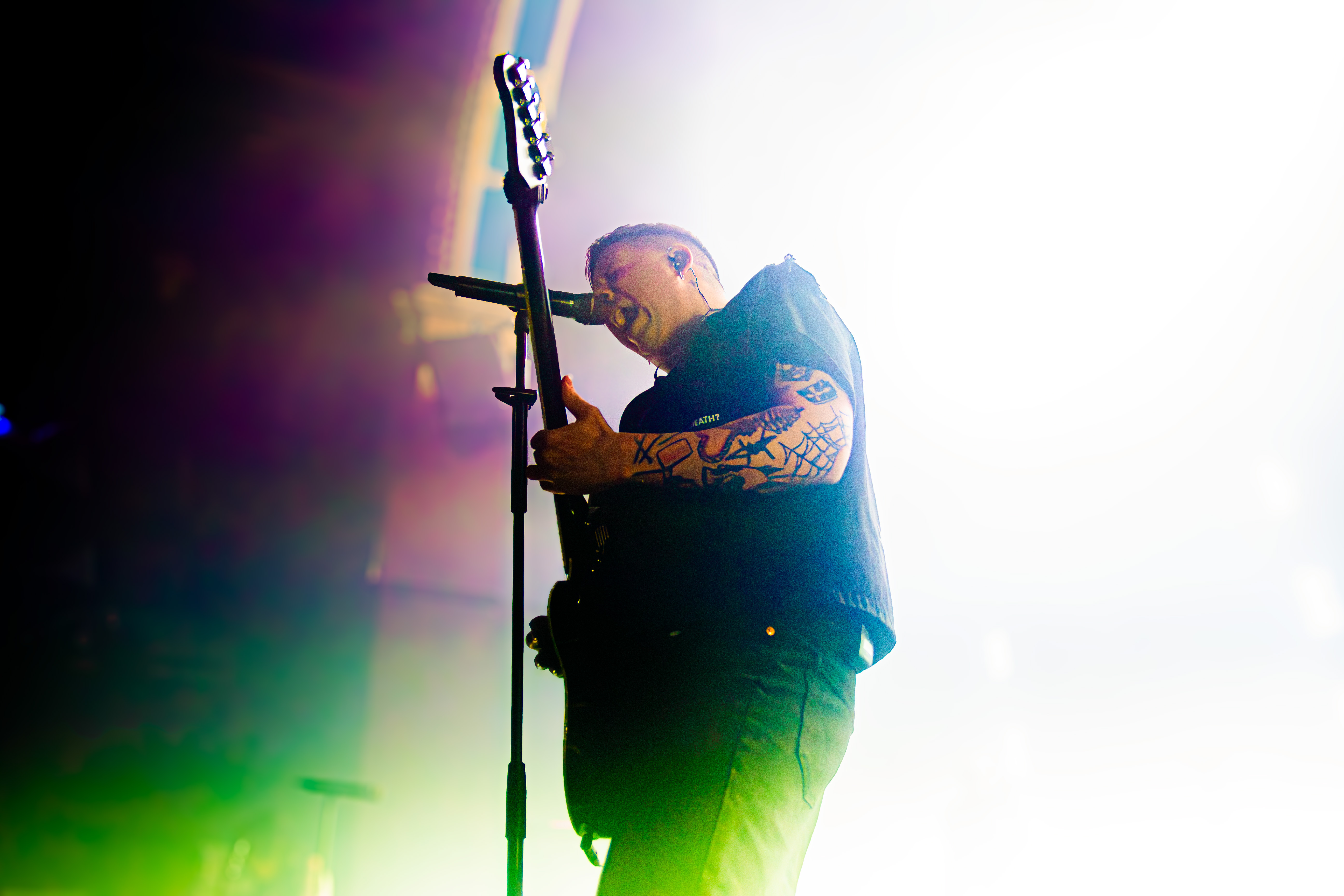 ‘Candy Coated Lies’ arrived in yet another new form—this time with a synth-heavy backing track that weirdly worked perfectly with Mee’s harsher vocals. Setting up an emotional ‘Breathing Underwater,’ Mee asked the crowd, “Is everyone sufficiently sweaty? Maybe it’s time to sweat from our eyes… also known as crying.” It started soft but ended in a massive, euphoric singalong.